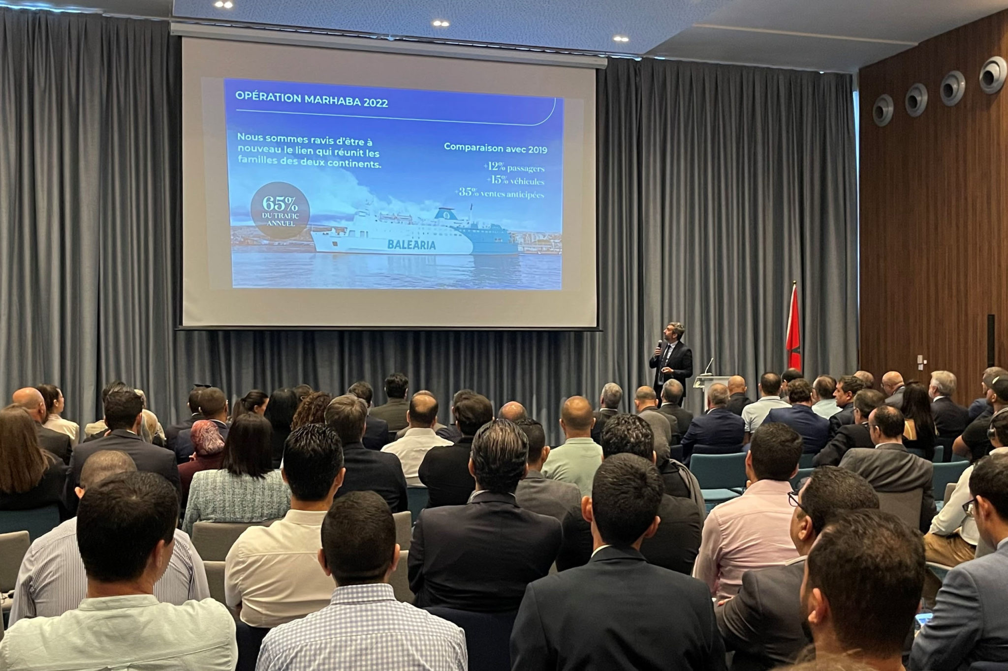 Présent également à cet important événement, le directeur général de la compagnie, Georges  Bassoul a mis en exergue le rôle essentiel de Baleària dans ce secteur. Ainsi, en 2022, la première compagnie espagnole a transporté un total de 4 400.000 personnes sur l’ensemble de ses lignes maritimes représentant 24 routes et 6 pays. Une mission hautement bien assurée par 33 navires et 1600 employés dont 255 Marocains (75 à Tanger, 17 à Nador et 163 pour la flotte).