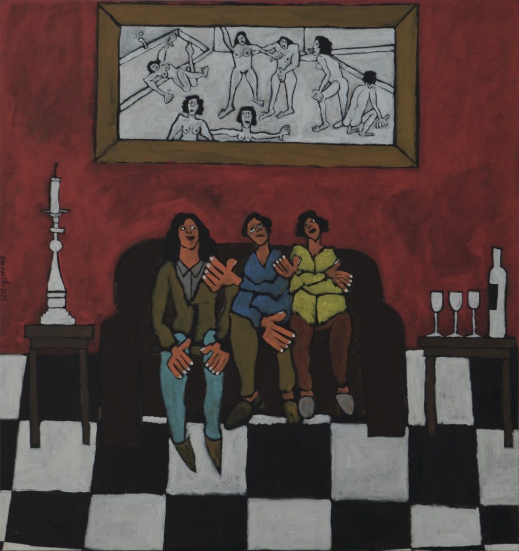messe qui demeure entièrement contenue dans tout ce que nos deux artistes chamaliens sont capables de liberté. Une liberté arrachée à cor et à cri à un environnement conservateur et traditionnaliste, où depuis les débuts de leur art, et avant chaque crucifixion, ils se permettent la nudité, l’alcool, la fête, les frôlements, le désir, le plaisir… Leur monde est certes d’une rare sombreur, hérité d’un expressionnisme de toutes les crises, celui allemand, celui viennois, jusqu’à celui des Irascibles new-yorkais, mais qu’ils ont su parer d’une nouvelle palette, dont ce rouge du même ton clignotant d’une alarme: ils nous préviennent: attention, ici se dépassent les limites de la subversion. À l’heure du tout-numérique et d’une hubris notamment née de la mondialisation, il n’est pas vain de rappeler que les espaces investis par les jeunes internautes et leurs influenceurs ont été conquis de haute lutte: la liberté actuelle, si fragile toujours et partout, demeure le fruit d’une longue et ancienne bataille, une grande épopée, dont les pugilistes méritent toute notre reconnaissance et notre admiration. Ces artistes, dont furent d’autres grandes figures chamaliennes, Mohamed Drissi, Mohamed Choukri pour la littérature, Timoud pour la dramaturgie, ont tout risqué pour nous tous, et pour que notre libéralisme puisse désormais prendre la place et jouir de leurs affranchissements.