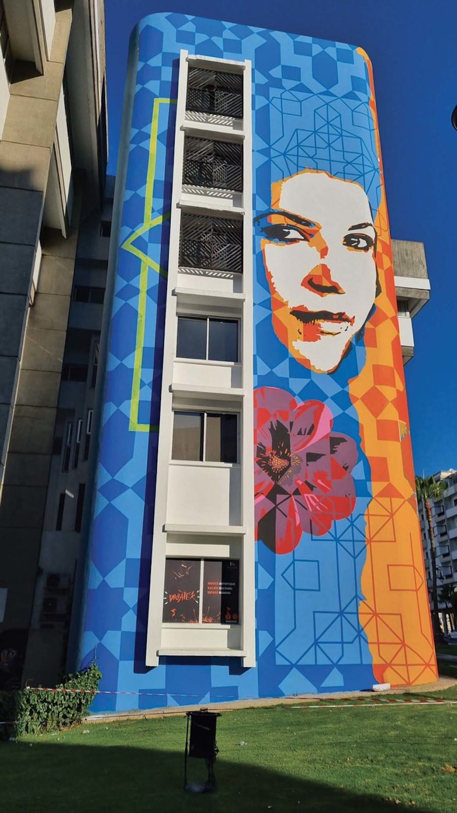 « Il s’agit de ma première expérience sur un format de ce type. C’était un véritable challenge, au vu de la hauteur de 21 mètres, ainsi que la représentation en miroir du portrait de Leila Alaoui. C’était un marathon de 3 semaines qui a été terriblement fatigant mais aujourd’hui je suis fier d’avoir pu représenter une femme dans nos rues et d’avoir rendu hommage à Leila Alaoui, qui m’a toujours beaucoup inspiré »…
