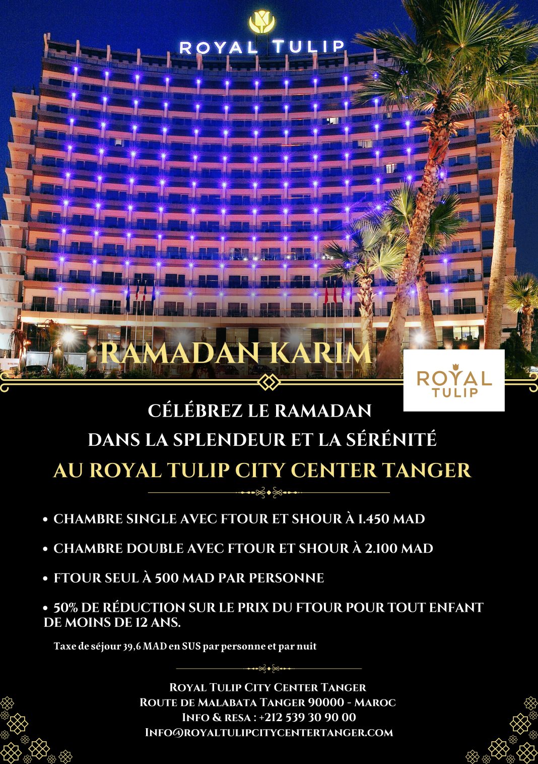 L’hôtel Royal Tulip City Center Tanger propose pour le Ramadan 2026 une expérience de Ftour alliant tradition marocaine et raffinement international, agrémentée d’une ambiance musicale andalouse.